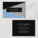 Elegant, stylish and sophisticated business cards with zigzag (chevron) pattern in grey and white colour and blue and black patches of colour. Modern and trendy design, perfect for zigzag lovers.