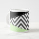 Grey Zigzag, Grey Chevron, Zigzag Pattern, Mint Large Coffee Mug
