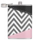 Grey Zigzag, Grey Chevron, Zigzag Pattern, Pink Hip Flask