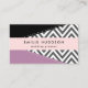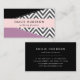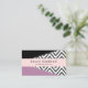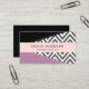 Elegant, stylish and sophisticated business cards with zigzag (chevron) pattern in grey and white colour with purple and black patches of colour. Modern and trendy design, perfect for zigzag lovers.