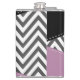 Grey Zigzag, Grey Chevron, Zigzag Pattern, Purple Hip Flask
