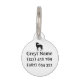 This version features a black greyhound and black text. A white text and greyhound version is also available here: https://www.zazzle.com.au/greyhound_id_standing_greyhound_white_on_black_pet_tag-256093711168567541