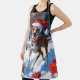 A sleek Greyhound dashes gracefully through the snowy landscape, wearing a festive red Christmas hat. This elegant winter scene reflects the breed’s speed, slim build, and gentle nature while capturing the joyful spirit of the holiday season. A heartwarming design full of festive charm.