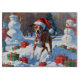 A sleek Greyhound dashes gracefully through the snowy landscape, wearing a festive red Christmas hat. This elegant winter scene reflects the breed’s speed, slim build, and gentle nature while capturing the joyful spirit of the holiday season. A heartwarming design full of festive charm.