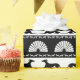 This design features greyhound silhouettes in the sphinx and standing positions in a classic monochromatic black and white color scheme. Embracing an Art Deco style, the greyhounds are accompanied by a fan motif. Overall the impression is elegant and understated.