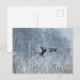 Pair of greylag geese flying in front of snow covered reeds postcard.