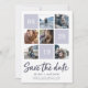 Announce your upcoming nuptials with these chic save the date cards featuring six of your favourite square photos and your wedding date in a gridded layout. "Save the Date" appears beneath in a fresh, casual handwritten script brush marker typeface. Personalize with your names, wedding location and website or other information in rich midnight blue. Cards reverse to wide horizontal stripes.