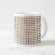 The original pattern by HomeWare on this giant Mug is exactly what it's called, a grid pattern made from an original photograph of the back of a chair. Dark grey and brown square dots in rows form the grid. The rows curve slightly as the chair does. Up close, the little square dots are holes with rounded corners and a shadow dimension around the upper and right hand edges. The colours of the body of the chair are muted tones from nature, pale sage green blending into pale mauve, then soft, sandy brown, looking as if they'd been painted on. This abstract design, with its sophisticated colour scheme, has a very modern look.
