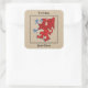 This griffin rampant illustration in red was inspired by various heraldic griffin designs.