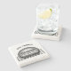 An attractive stone coaster featuring a bold and dynamic graphic design of the iconic flour mill building in Griffintown, Montreal, Quebec. It is rendered as a black and white vector illustration. The template options allow you to resize the image, change the background colour, apply various filters and edit the bon appétit text.