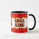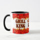 A mug reading Grill King in smouldering letters with red and orange flames on the top and bottom.