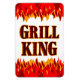 Un amusant frigo aimant lecture Grill King en lettres fumantes et flammes rouge et orange.