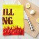 Grill King Red Flames Yellow Kitchen Towel