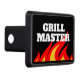 Grill Master funny car trailer hitch cover. Add your own name or funny quote optionally. Red hot fire flames design with bold typography. Available in 2 sizes. Cool manly Birthday gift idea for BBQ chef, cook, dad, brother, husband, boyfriend, boss, coworker, uncle, friend, grandpa, race car driver etc. Automotive auto sport humour.