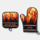 Every BBQ grill chef cook will love this custom cooking set featuring black backgrounds with red, orange, & yellow flames. The pot holder says 'grill master' and the glove features the name of your favourite grill chef. Great gift idea.
