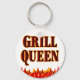 Grill Queen funny bbq saying in a western flaming font for cooks and cookout chefs. With graphic art of red and orange flames at the bottom of the design. Another original by MomsRetro.