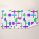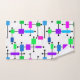 Cet ensemble de serviettes a un design moderne du milieu du siècle d'une grille faite de lignes horizontales et verticales noires avec des rectangles dans différentes tonalités vibrantes de vert, bleu et violet.