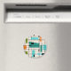 Ce Retro Grid et Starbursts Round Magnet est l'endroit où le style vintage se marie à la modernité. Arrière - plan de couleur crème avec kitschy, carrés de kilter et rectangles turquoises, turquoise, bleu clair, orange et vert avocat. Les blocs de couleur fantaisiques sont superposés dans certaines intersections de grille. Il y a aussi des rectangles noirs avec des lignes verticales et horizontales noires formant un motif de grille. Des créations de starburst noir et des carrés placés sporadiquement tout au long de cette tapisserie moderne de couleur du milieu du siècle. Attrapez vos bottes de départ et vos clochers et profitez de ce retour aux années 1960.