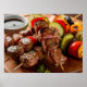 Grilled Meat Skewers and Shish Kebab with Vegetables on Wooden Board. Enjoy a mouthwatering feast with these grilled meat skewers and shish kebabs, featuring tender chunks of meat, vibrant vegetable