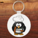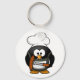 Cute penguin grilling a sausage and wearing a white chef hat.