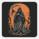 Grim Reaper Cartoon in Sunset Graveyard Square Sticker