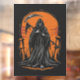 Grim Reaper Cartoon in Sunset Graveyard Window Cling