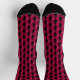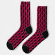 This awesome pair of patterned crew socks features an image of the Grim Reaper created using vectors. He stands menacingly holding his scythe in his bony white hand. His sunken purple eyes and demonic grin are only just visible underneath his black cloak.
