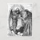 this vintage death art is an illustration from the Rubaiyat of Omar Khayyam by Edmund J Sullivan. here the grim reaper/ angel of Death approaches a woman bearing a large three handled mug dripping blood or some other dark sinister liquid. some interesting detail work here including large feathered wings for the reaper and a bright halo.