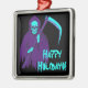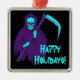 Add a touch of horror to your holiday decor with this square metal ornament, featuring a creepy neon blue and purple Grim Reaper paired with the cheerful words "Happy Holidays!" Perfect for those who enjoy blending spooky and festive vibes, this ornament delivers a unique mix of eerie and joyful. Whether you're into goth aesthetics or just love a spooky twist on Christmas, this piece will stand out on any tree.