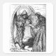 this vintage death art is an illustration from the Rubaiyat of Omar Khayyam by Edmund J Sullivan. here the grim reaper/ angel of Death approaches a woman bearing a large three handled mug dripping blood or some other dark sinister liquid. some interesting detail work here including large feathered wings for the reaper and a bright halo.