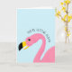 Say "Happy Birthday!" in a humourous way with this funny flamingo birthday card! The front features a light blue background with a grimacing pink flamingo peeking out from the bottom right corner with the words, "You're Getting Older!" On the inside, there is a full-body pink flamingo graphic and the message "Happy Birthday!" You can personalize the text to reflect your own message and well-wishes!