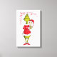 This heartwarming illustration captures the moment the Grinch's heart grew three sizes! The full-body image shows the tall Grinch dressed in his fuzzy red Santa suit, gently holding the tiny Cindy Lou Who, who is sweetly dressed in a matching little Santa cap and pink outfit, holding a candy cane. The Grinch is genuinely smiling (not scheming!), and red lines radiate from his head, illustrating his newfound Christmas joy. It's the perfect image for celebrating the true spirit of the holidays!