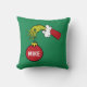 This is a fun, decorative square throw pillow perfect for holiday seating. The pillow features a single, large graphic of the Grinch's fuzzy green hand emerging from a red sleeve with a white cuff. The hand is reaching for or holding a red Christmas ornament that is prominently personalized with the name in white block letters. The entire design is set against a solid, festive Christmas green background, making it a great accent piece for couches, chairs, or beds during the holiday season.