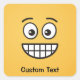 A face with open eyes and a big open (grinning) mouth, showing teeth. Custom text.
