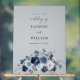 Ces fleurs peintes à la main de bleu marine, bleu Dusty et bleu clair créent une belle Affiche de bienvenue Mariage rustique d'automne, d'été et d'hiver. Un qui est moderne et chic, rustique et boho et fait avec des fleurs aquarelles peintes à la main. Bienvenue dans vos invités à votre mariage ou à votre fête avec votre Blue & Navy Floral Mariage Affiche de bienvenue Acrylique, voir en détail, Signer.