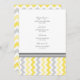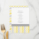 Menu de dîner de mariage dans jaune citron lumineux, gris élégant et blanc avec le rétro motif de zigzags de chevron d'amusement, personnalisable avec vos détails et disponible dans les produits assortis de mariage.