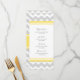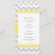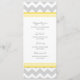 Menu de dîner de mariage dans jaune citron lumineux, gris élégant et blanc avec le rétro motif de zigzags de chevron d'amusement, personnalisable avec vos détails et disponible dans les produits assortis de mariage.