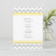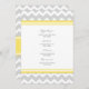 Menu de dîner de mariage dans jaune citron lumineux, gris élégant et blanc avec le rétro motif de zigzags de chevron d'amusement, personnalisable avec vos détails et disponible dans les produits assortis de mariage.