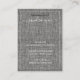 Gris Lin noir Texture Look Bijoux Carte d'affichag