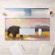 A digital painting of a grizzly bear approaching a pond while the sun descends over distant mountains. Customize by adding your own text.