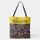I bought this tote bag because of the beautfiful design purple flowers. My dear friend had loss her best friend to cancer. I was very excited to see how well the designed is so beautiful and my friend loves her gift. The print came out perfect.