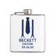 This flask is perfect for the groom. If all your wedding party will be wearing suits this design with suspenders and a tie in blue would be perfect. Casual yet formal. They'd be great for a bachelor party or weekend. Get one for everybody in the bridal party. The title can be changed to best man, groomsman, usher, etc.