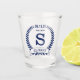 This shot glass is perfect for the groom! It is traditional yet modern with a blue laurel wreath and banner with the wedding date, title/job and first initial and first name all in blue. They'd be great for a bachelor party or weekend. Perfect for doing shots! Get one for everybody in teh bridal party - they'll love them! The title can easily be changed to best man, groomsman, usher, etc.