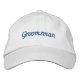 Custom Embroidered Alternative Apparel Basic Adjustable Baseball Cap Hat in White with Groomsman in Navy Blue text typography lettering and digital graphic design by TheFabricSeal print on demand shop at Zazzle.com #ZazzleMade https://www.zazzle.com/store/thefabricseal TheFabricSeal©️Original.
