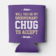 Get the wedding celebration started in style with a funny personalized groomsman proposal can cooler. The purple, gold and white design features stylish modern typography names and a customizable request reading "Will you be my groomsman? Chug to accept". All text is simple to customize or delete and can be different or the same on front and back. Please note that gold is printed colour, not metallic foil. These unique and original beer can coolers make elegant bachelor party favours from the groom to his groomsmen friends. Cheers Bro!