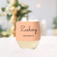 A stemless wine glass with a stylish, minimalist design on a peach background. Personalize with the groomsman's name, which will be displayed in elegant script typography.