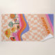 Groovy 70s Mushroom Flower Personalized Peach Chequerboard Beach Towel