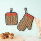 This oven mitt set features a fun abstract pattern in retro shades of orange, teal, gold, and brown. It includes the inspirational quote "Grateful. Thankful. Blessed. and is personalized with your name or copy of your choice using the personalization tool! If you need help with coordinating items, message Suzanne via Zazzle or email suzparada@gmail.com.