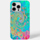 This Cool Colourful iPhone 15 Pro Max Phone Case features a Groovy Abstract Retro Turquoise Blue and Rainbow Colours Liquid Swirl Painting with Aquamarine, Red, Yellow and Lime Green Accents. The result is a colourful, groovy, abstract design that you will love!