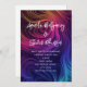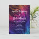 Wedding invitation with a cool pattern with a sixties vibes. Rainbow coloured circles and swirls.